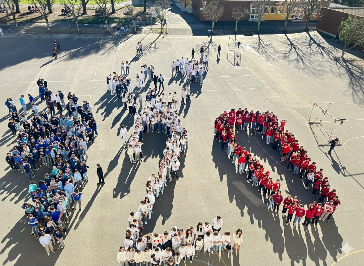 Pour célébrer le 120ème anniversaire de la Loi sur la Laïcité, enseignants, personnels, élèves se sont associés pour former le chiffre 120 aux couleurs Bleu blanc rouge.